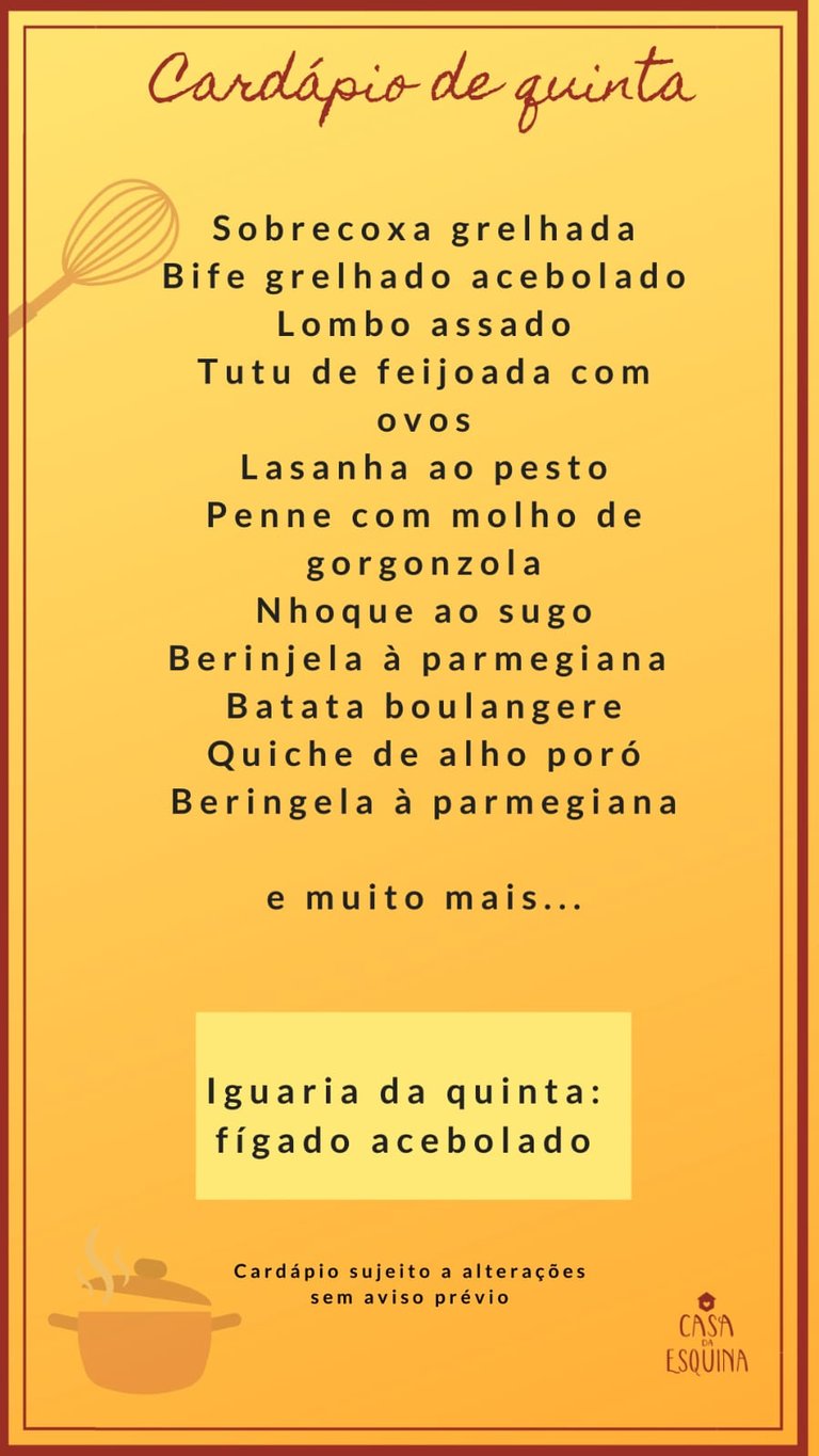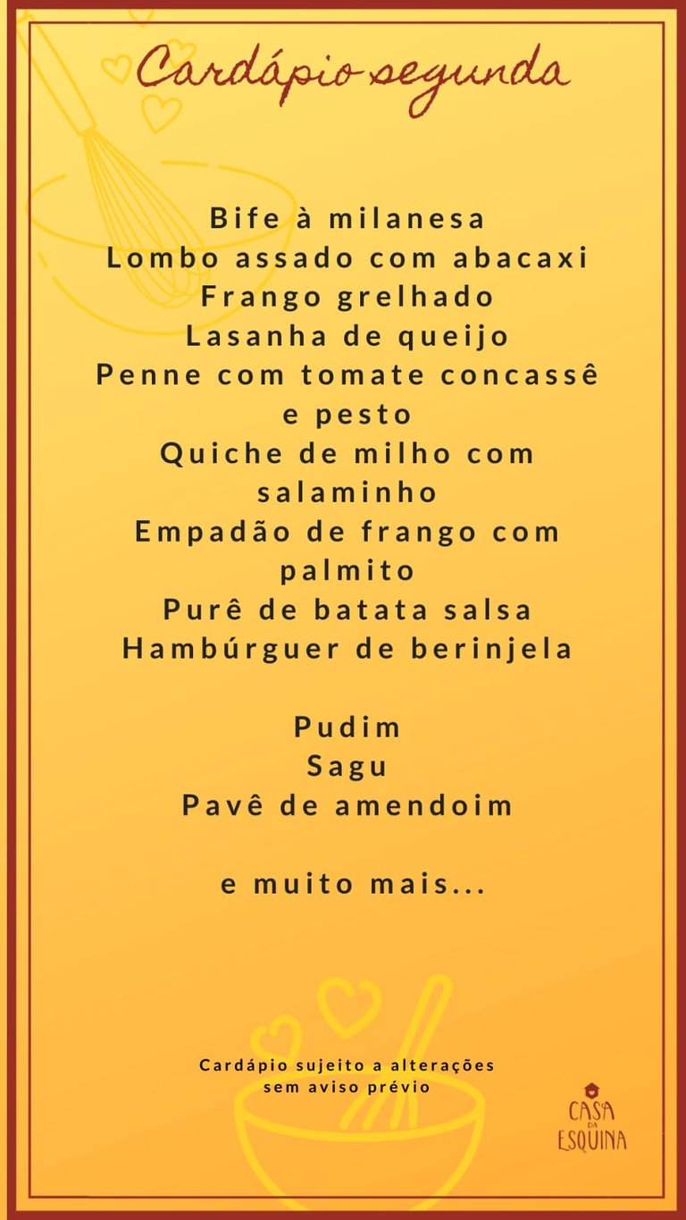 Cardápio semanal