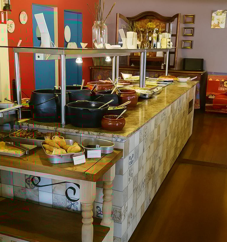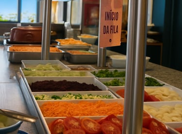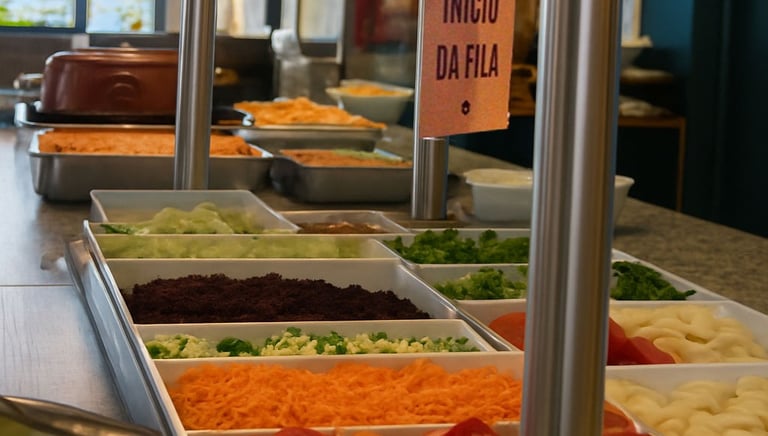 O restaurante abre apenas para almoço, todos os dias, com o sistema BUFFET POR QUILO! O buffet é bem variado, com várias opções de massas, carnes, saladas e guarnições. Nosso cardápio atende os mais diversos públicos, seja vegano, vegetariano, carnívoro, amantes de massa e até o público mais exigente, que é o público infantil, pois sempre temos os pratos que eles gostam!